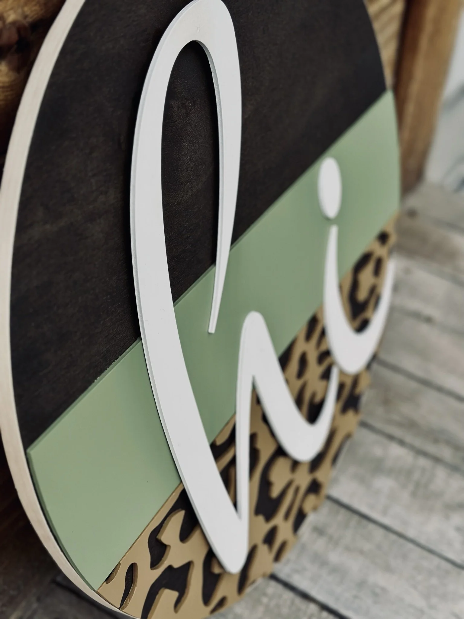 Shop › Cheetah Print hi Image 1 of 2 Image 2 of 2 Cheetah Print hi $66.00 18” Stained backer with laser cut words and pieces Purchase Added! 18” Stained backer with laser cut words and pieces